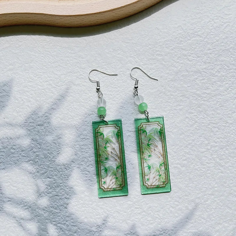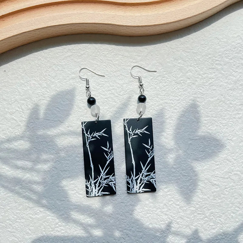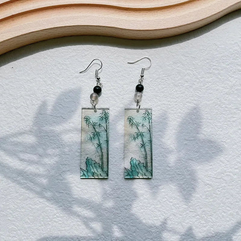 minus 2025 New Chinese Ancient Style Ink Painting Peony Flower Acrylic Dangle Earrings for Women Vintage Ethnic Square Drop Earring