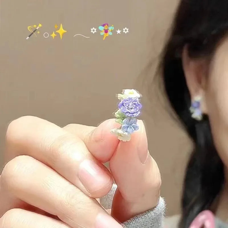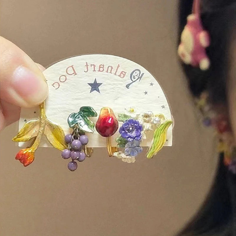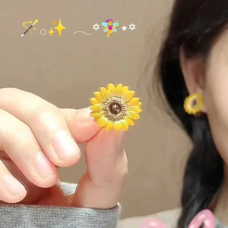 5pcs Summer Sunflower Purple Enamel Colorful Flower Ear Clips Set for Women Girls INS Earrings Korean Fashion Sweet Ear Cuff