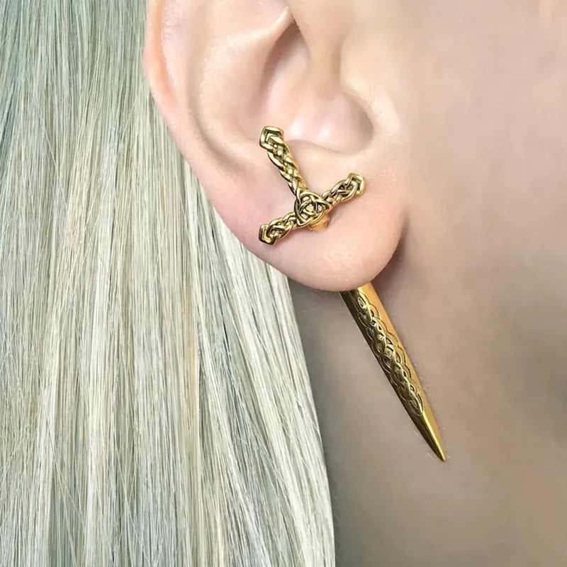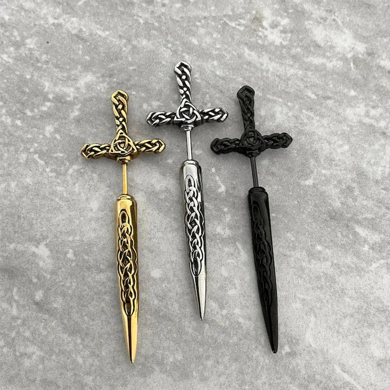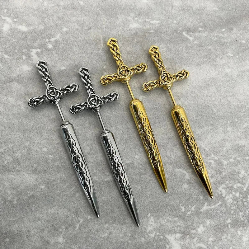 plus Black Gothic Sword Shape Pattern Piercing Earrings for Women Men Punk Jacket Goth Dagger Stud Earrings Party Gift