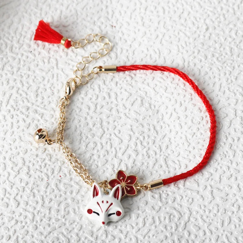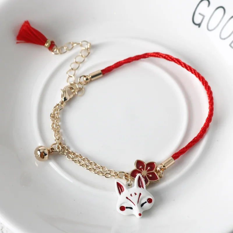 Charm Cartoon Animal Cute Fox Bracelet for Women Lucky Bell Flower Enamel Fashion Rope Link Chain Bracelets Gift