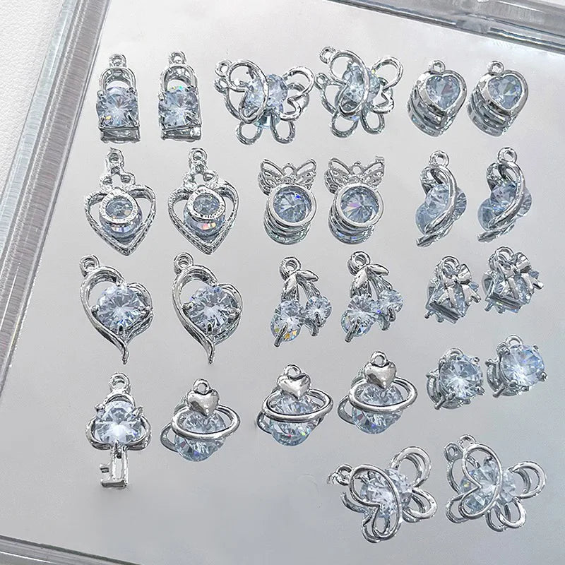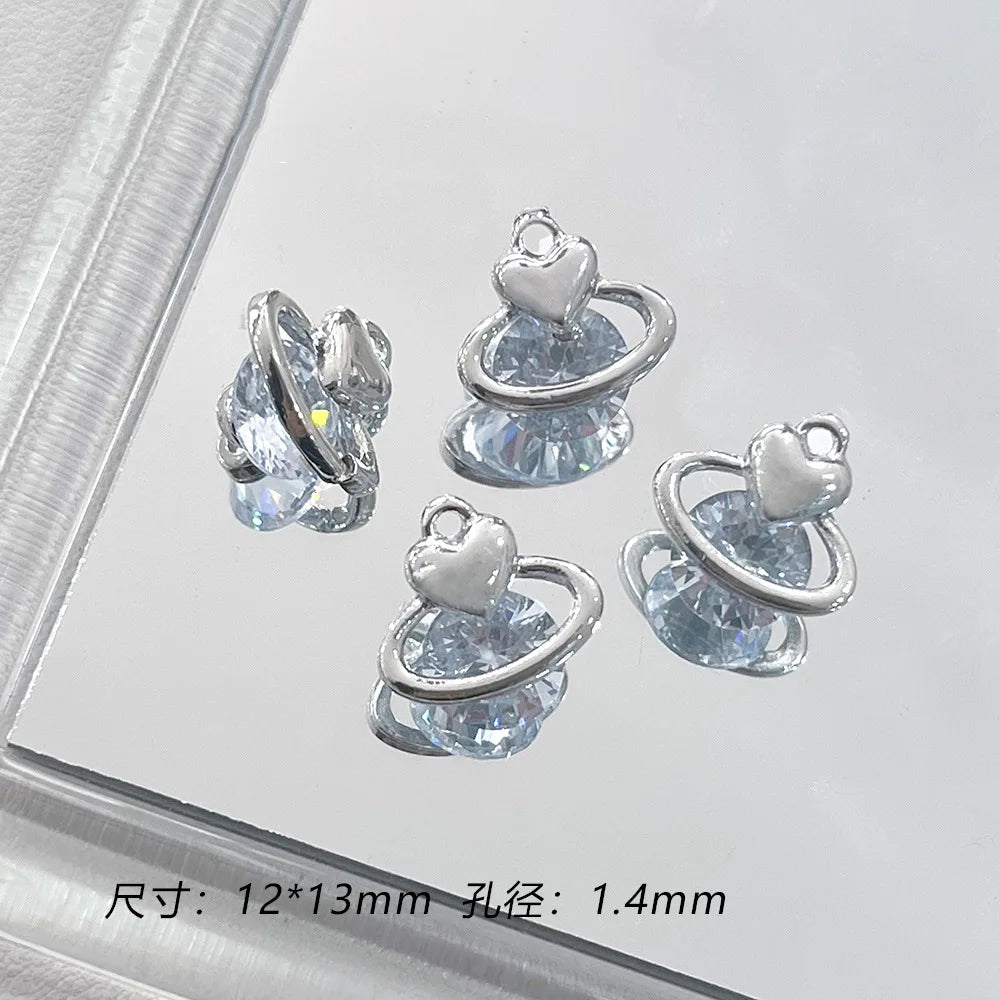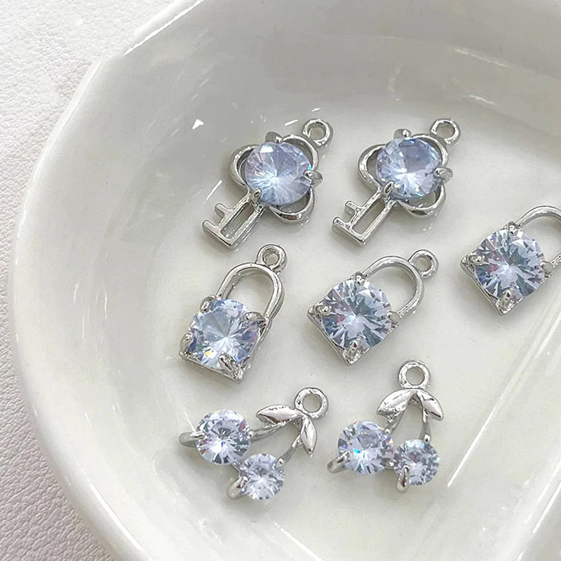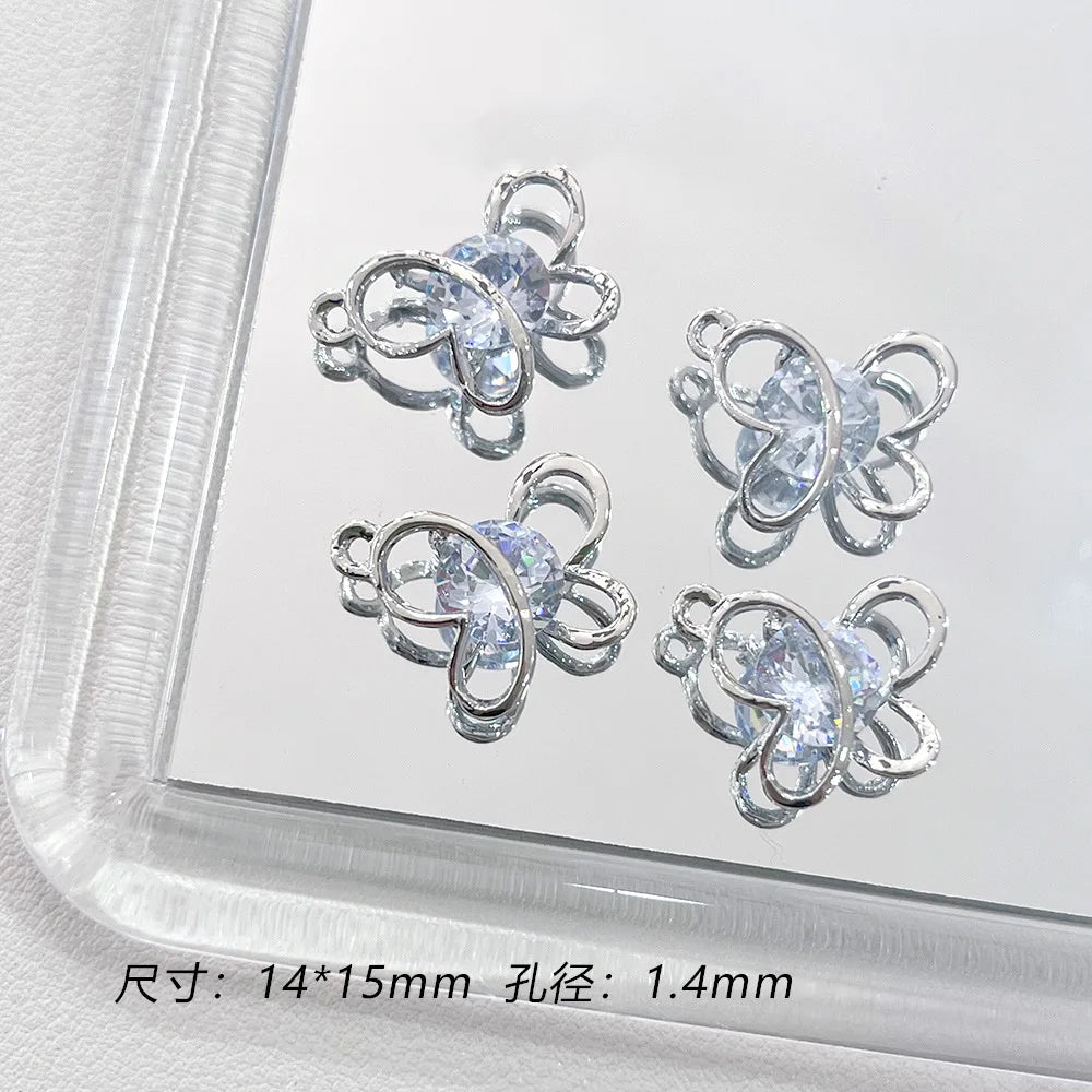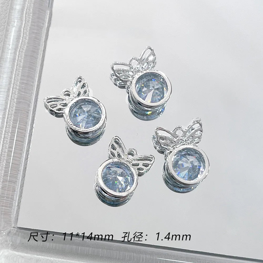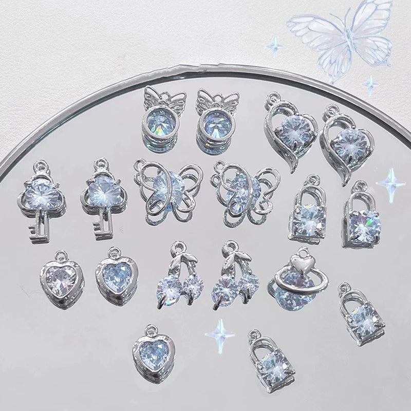 Fashion 4pcs Blue Rhinestone Heart Cherry Moon Butterfly Replaceable Pendant DIY Jewelry Making Earring Necklace Accessories