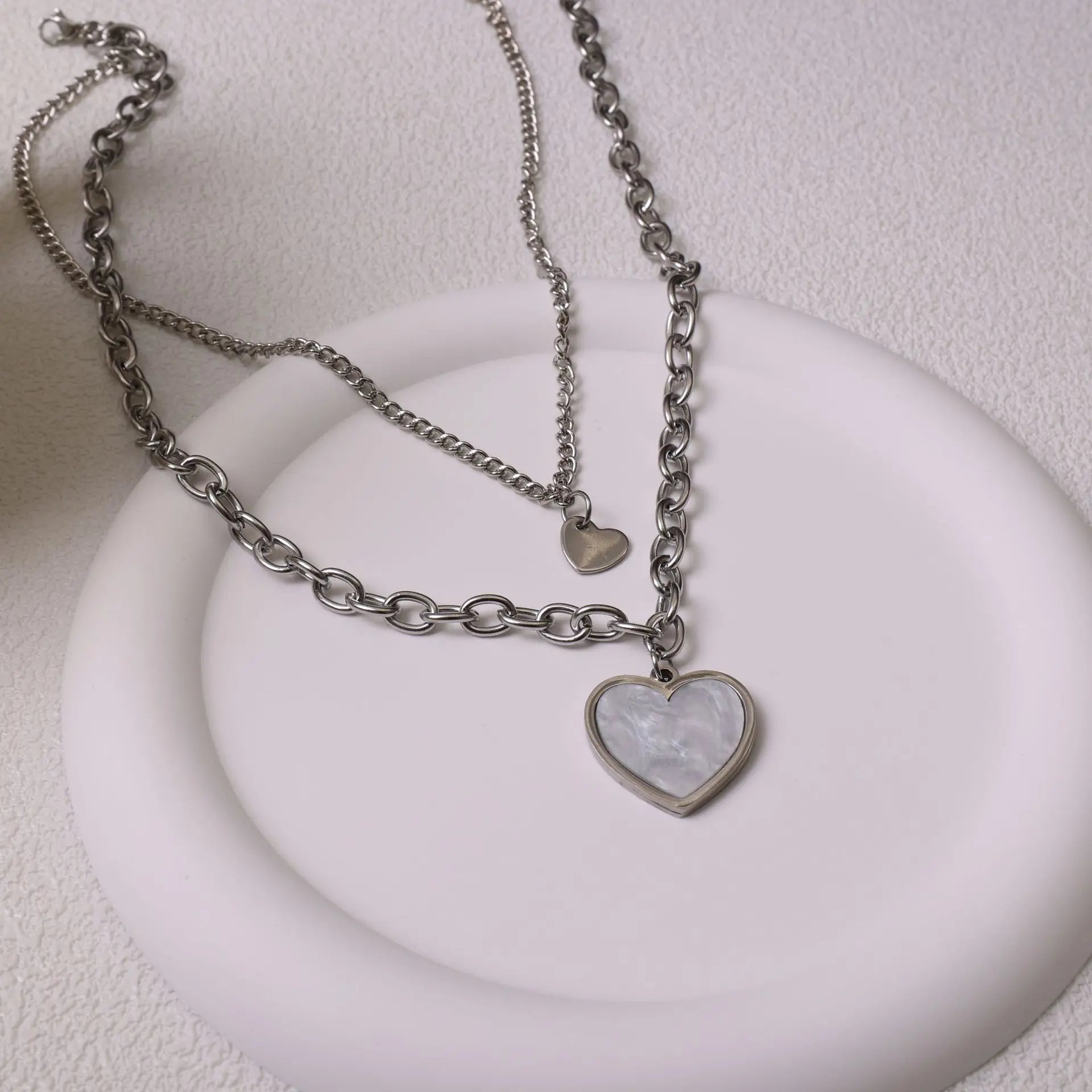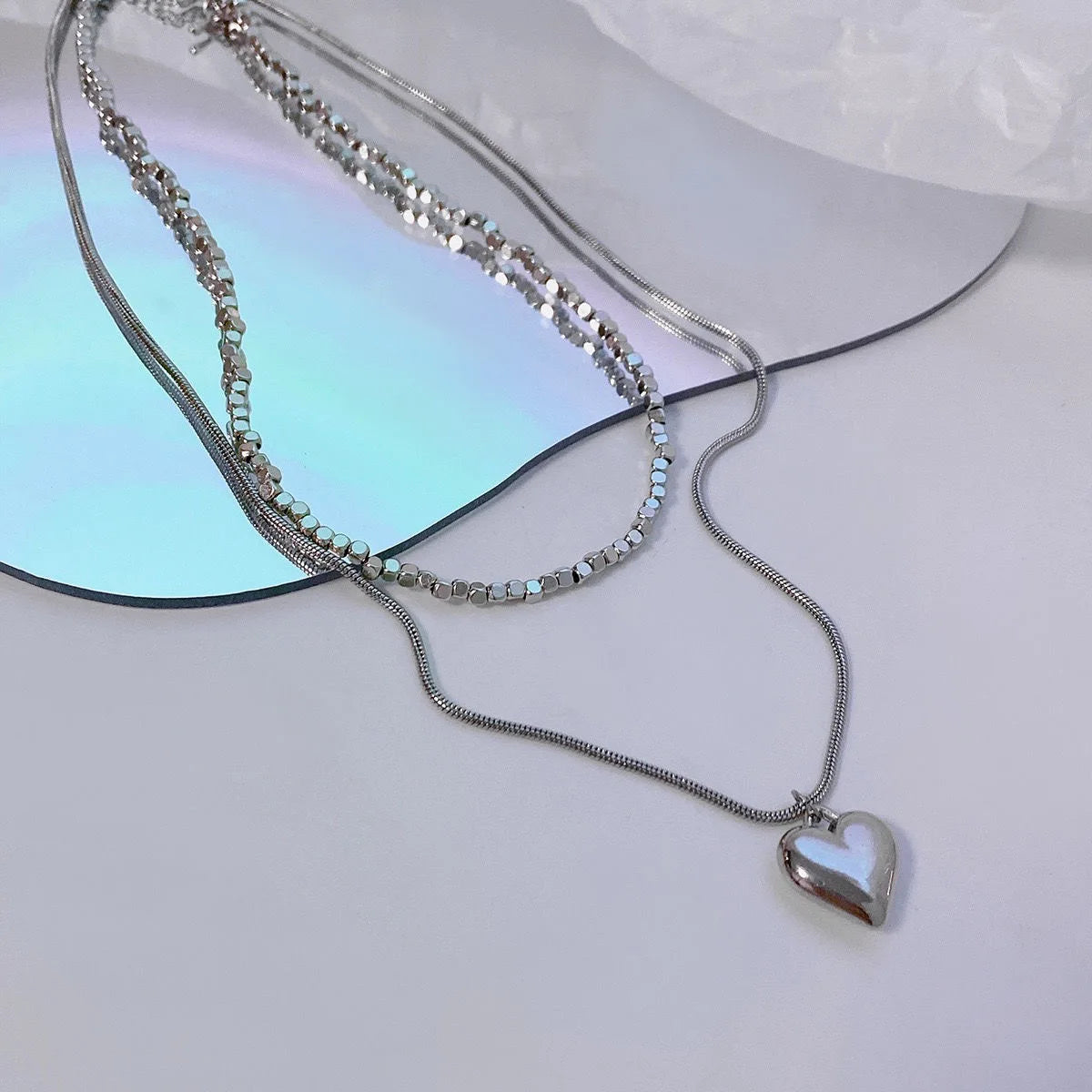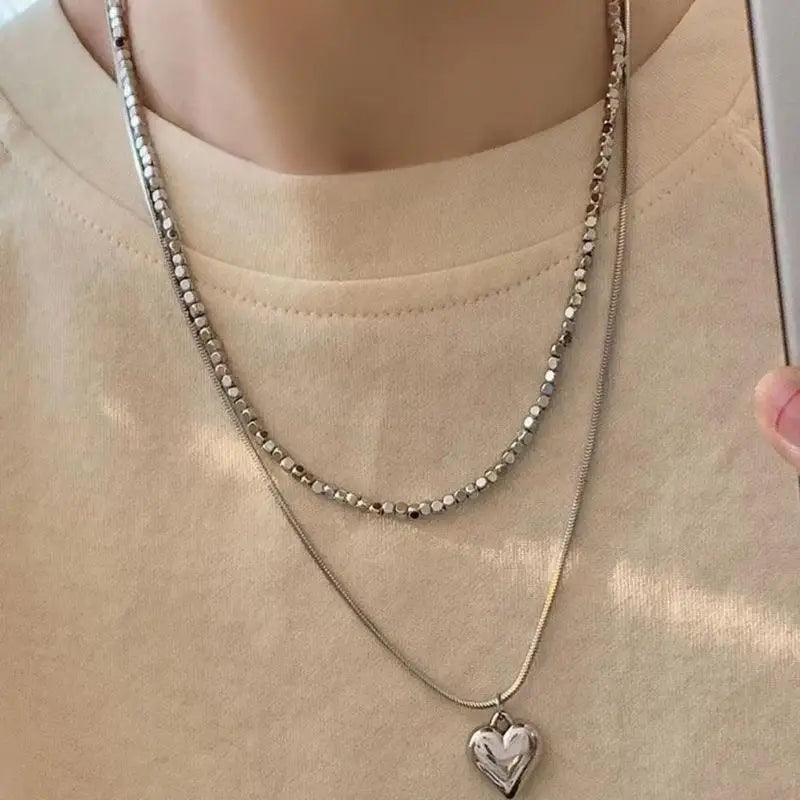 plus INS Beads Chain Silver Color Heart Pendant Necklace for Women Kpop Girl Korean Fashion Choker Collar 2023 Trendy