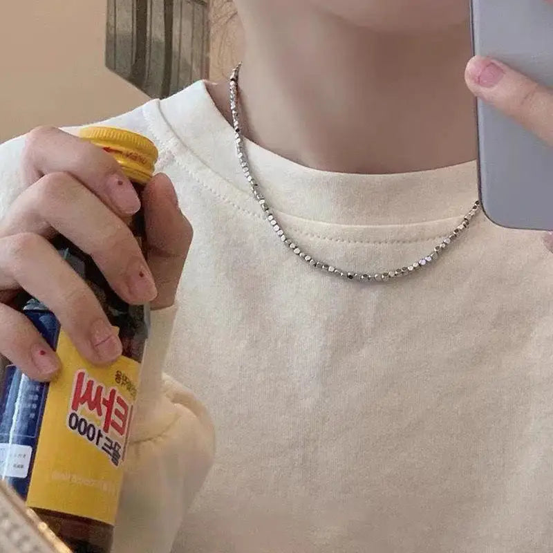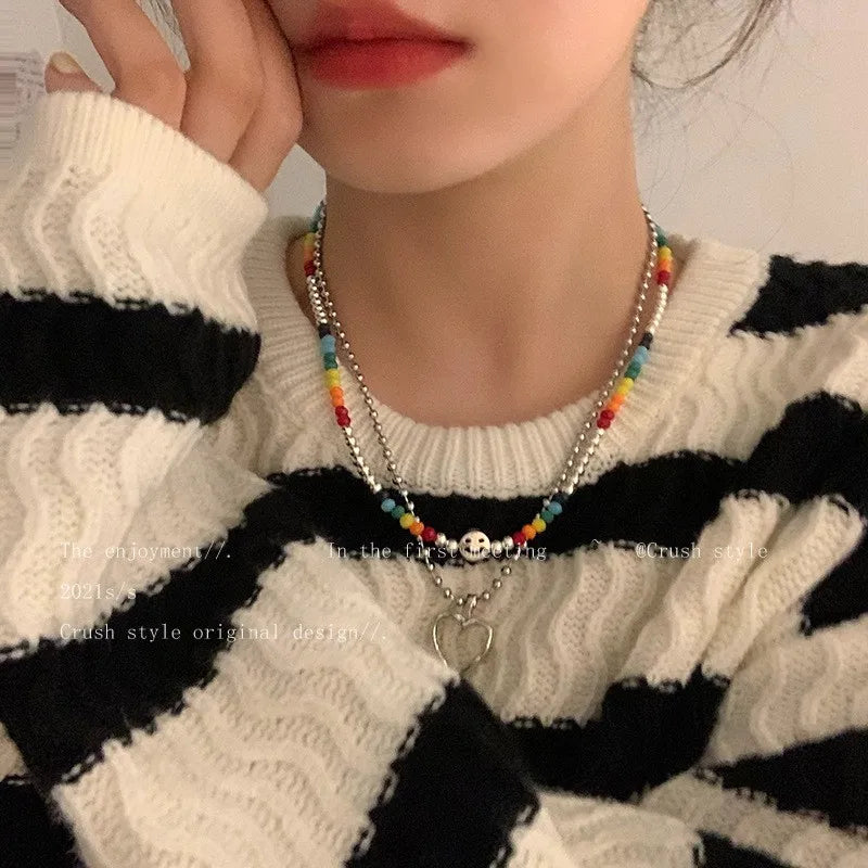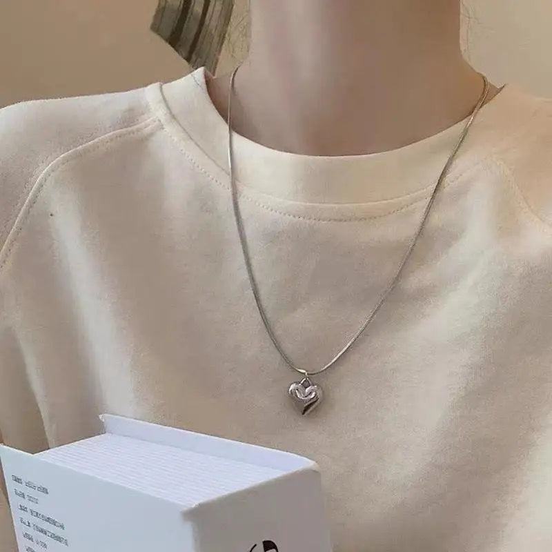 INS Beads Chain Silver Color Heart Pendant Necklace for Women Kpop Girl Korean Fashion Choker Collar 2023 Trendy