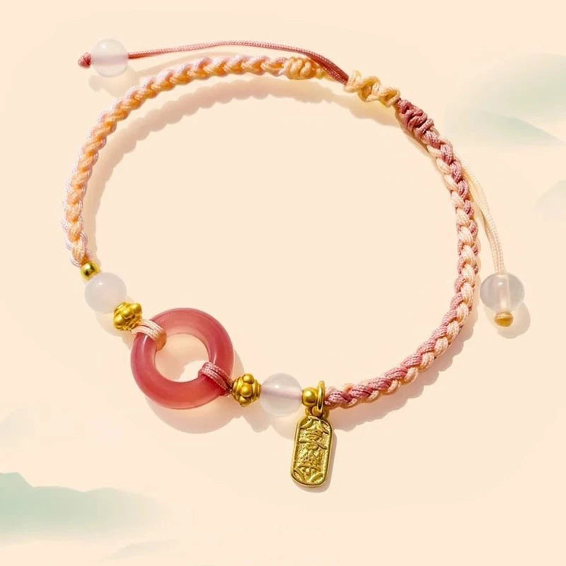 minus Kiss Jewlery Handmade Weave Rope Bracelets for Women Chinese Ethnic Style Fashion Pink Lucky Beads Adjustable Bracelet Rope Gift