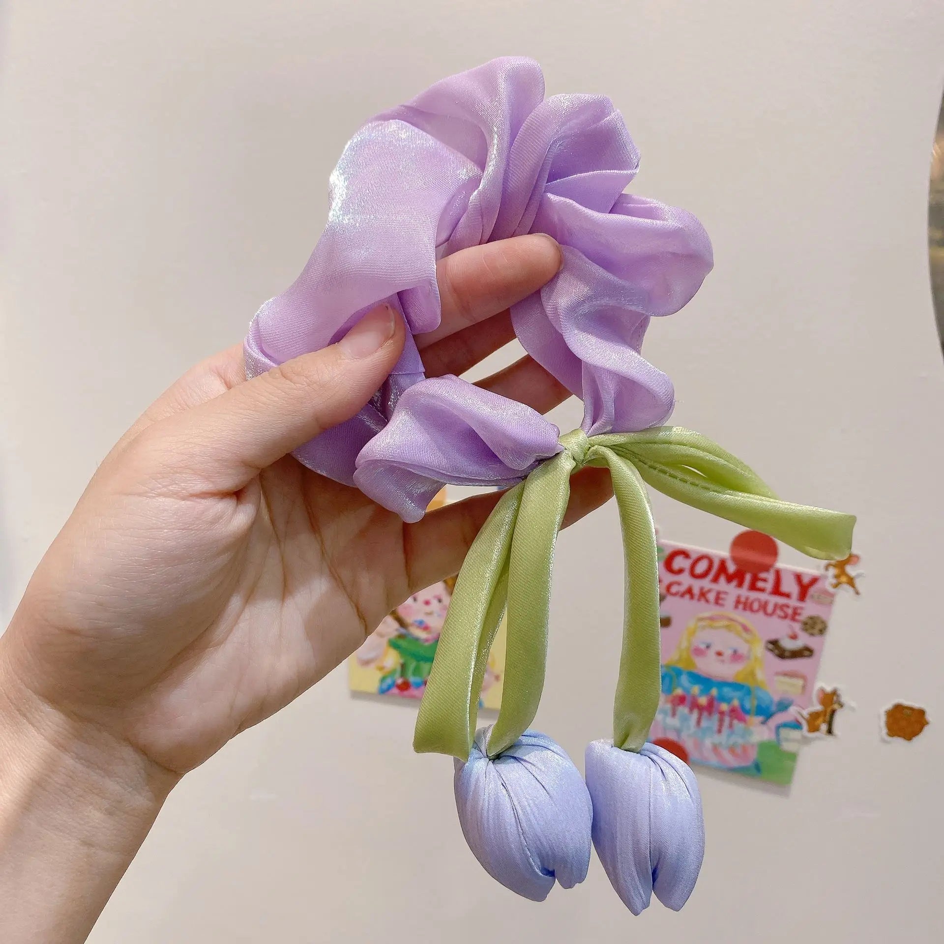 Korean Fashion Sweet Ribbon Tulip Large Intestine Headband Women Girls INS Pink White Flower Hair Rope Accessories