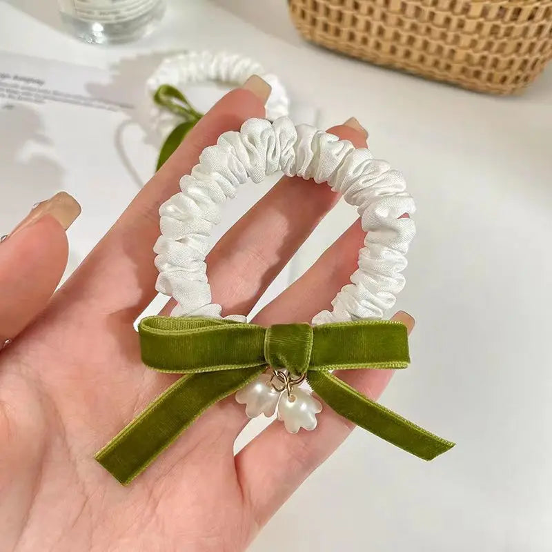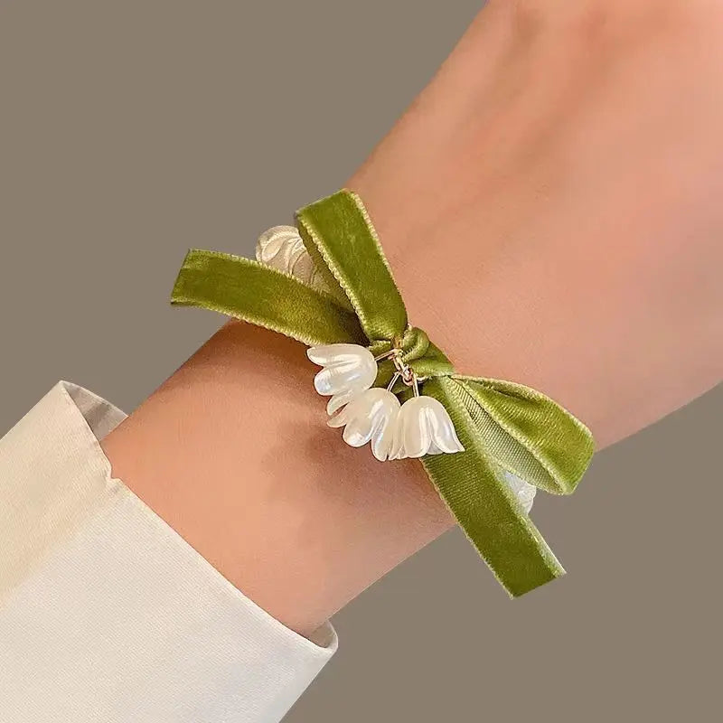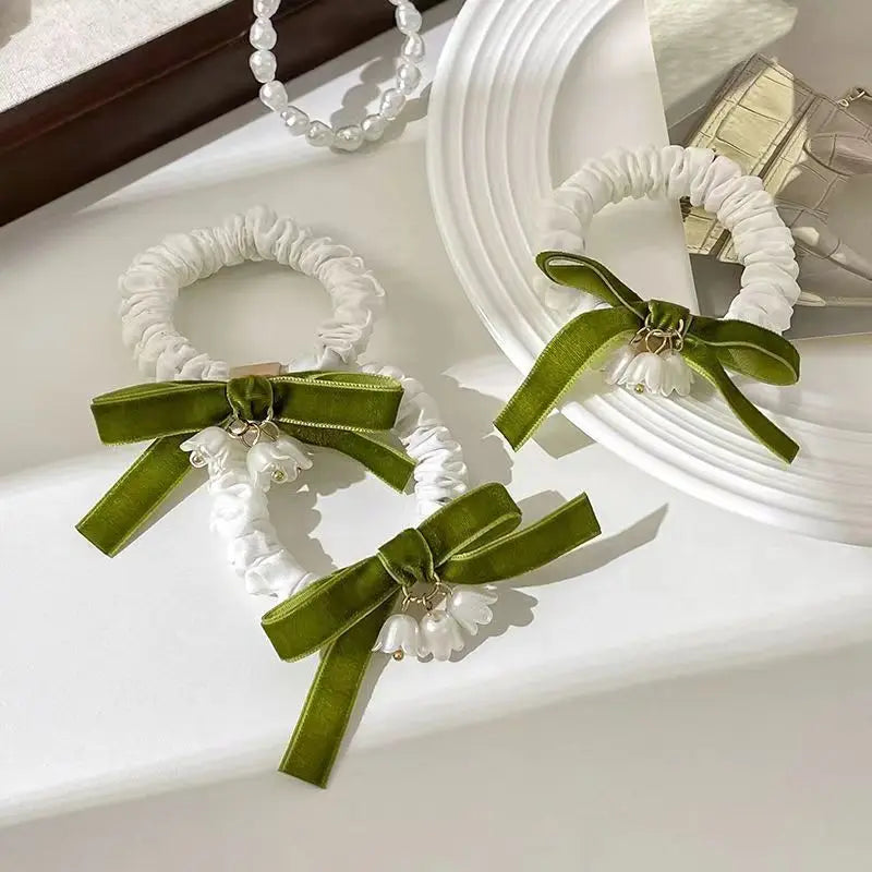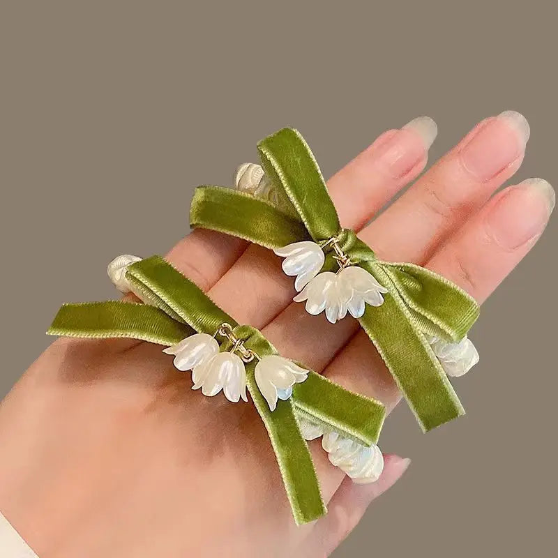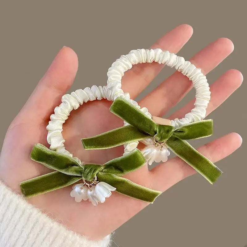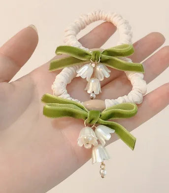 Lily of the Valley Flower Green Velvet Elastic Hair Bands Scrunchies Women Korean Fashion Ponytail Band Accessories