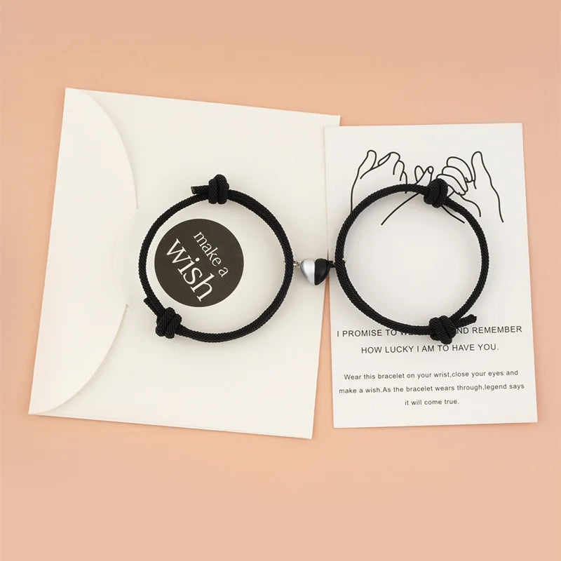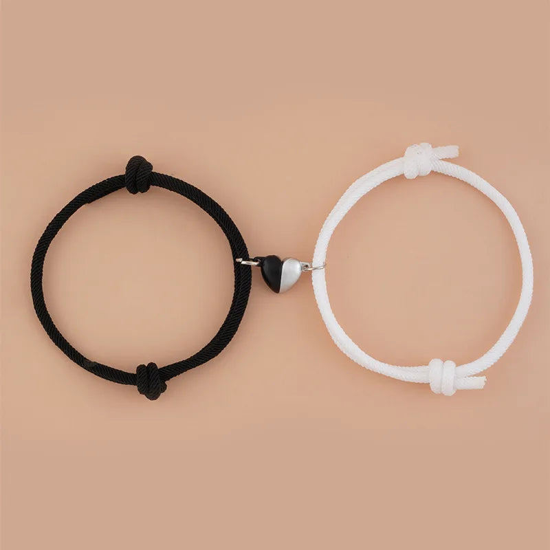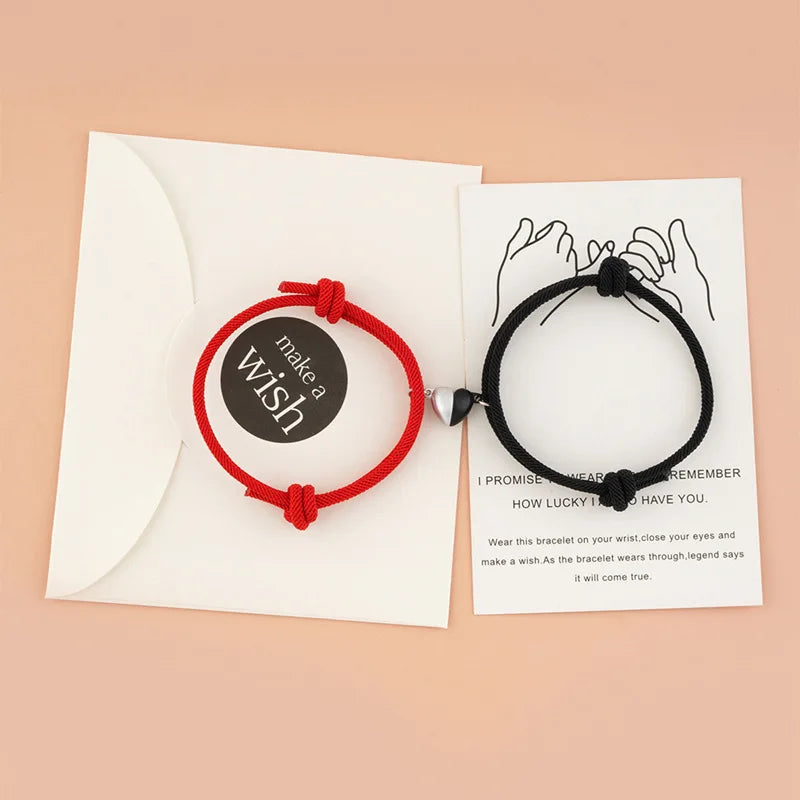 minus Magnetic Heart Shape Pendant Bracelet Couples Flocking Rope Chain Magnetic Fastening Bracelet 2PCS Female pulseras