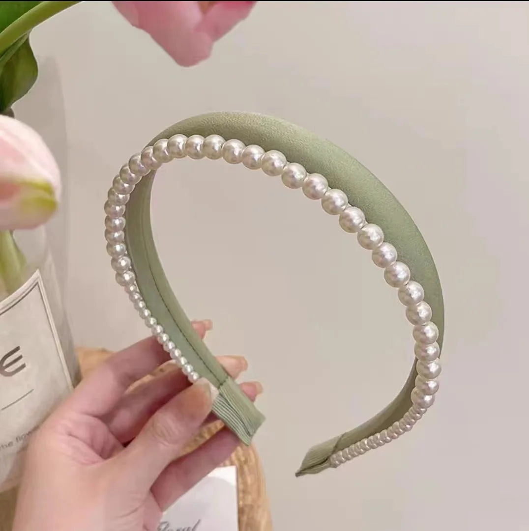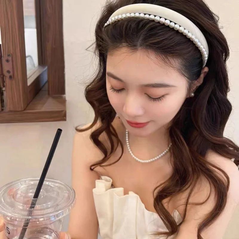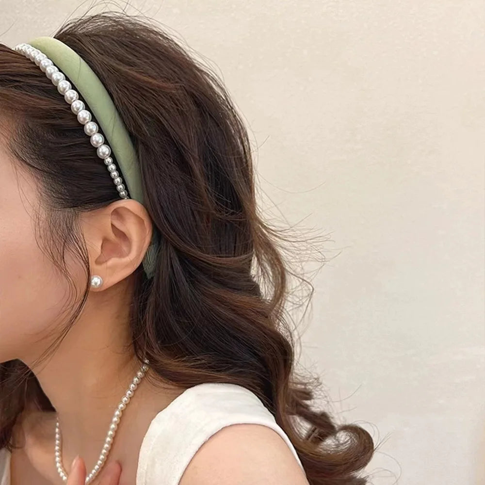 minus New Sweet Temperament Double-layer Pearl Hair Hoop Headband for Women Korean Fashion White Green Hair Accessories