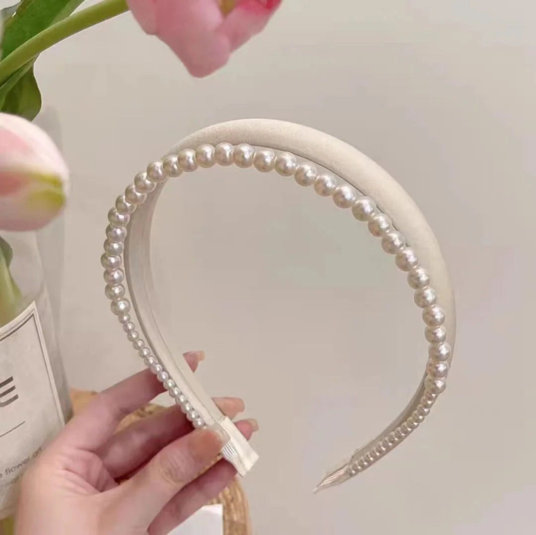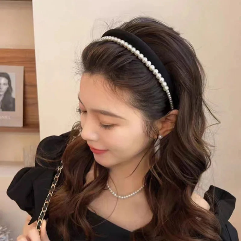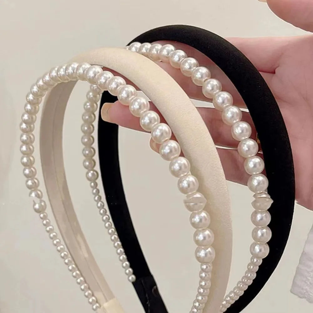 plus New Sweet Temperament Double-layer Pearl Hair Hoop Headband for Women Korean Fashion White Green Hair Accessories