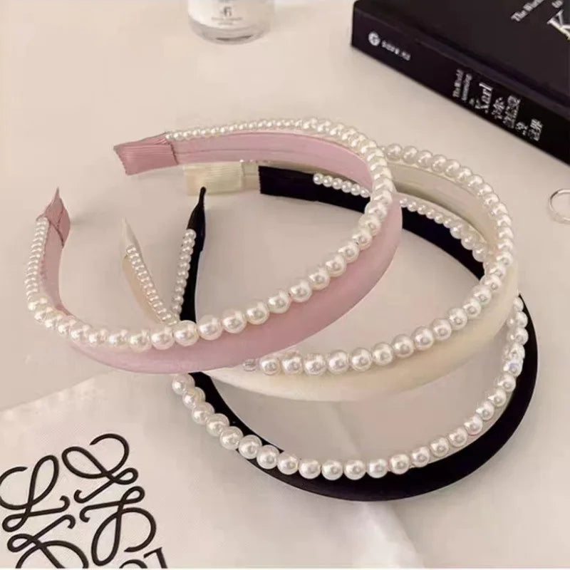 New Sweet Temperament Double-layer Pearl Hair Hoop Headband for Women Korean Fashion White Green Hair Accessories