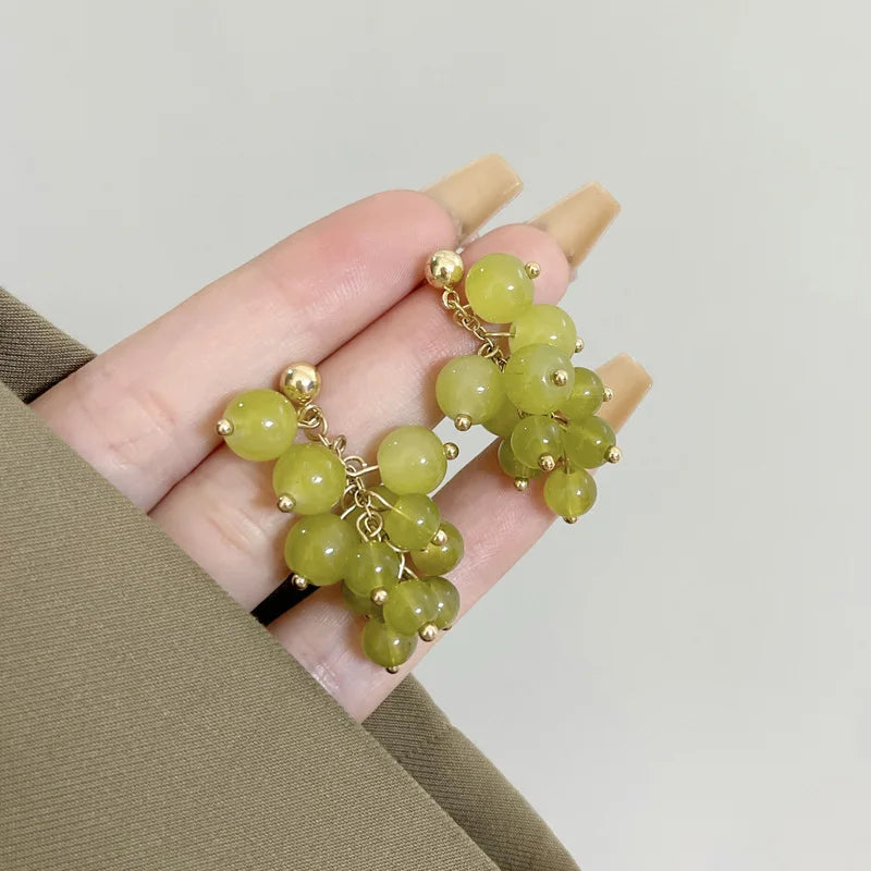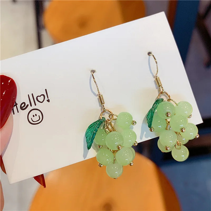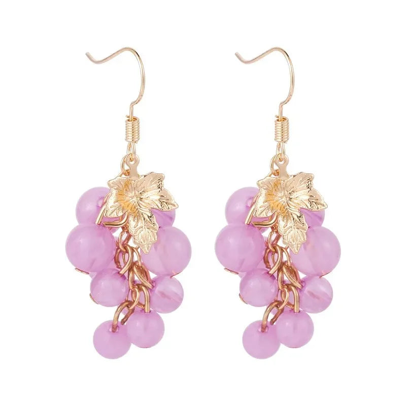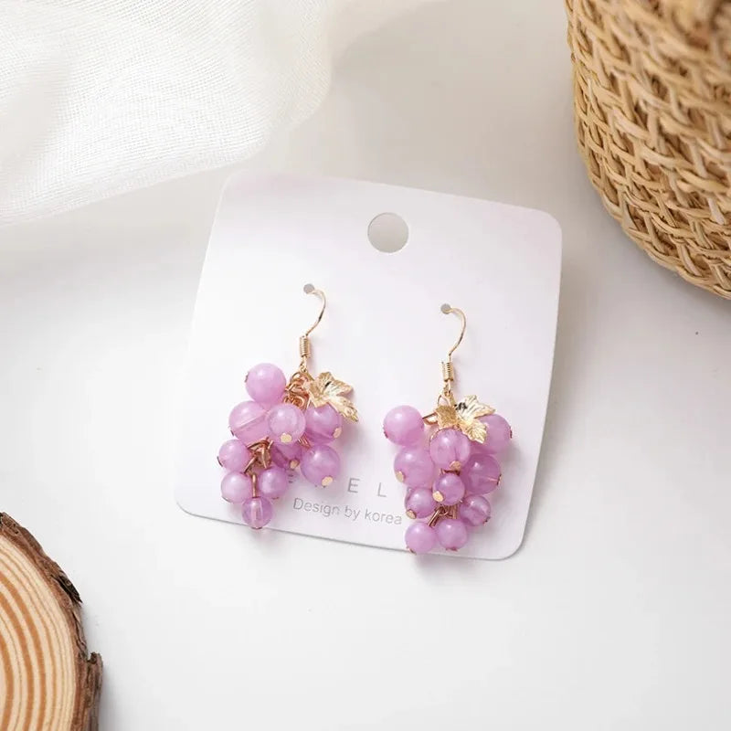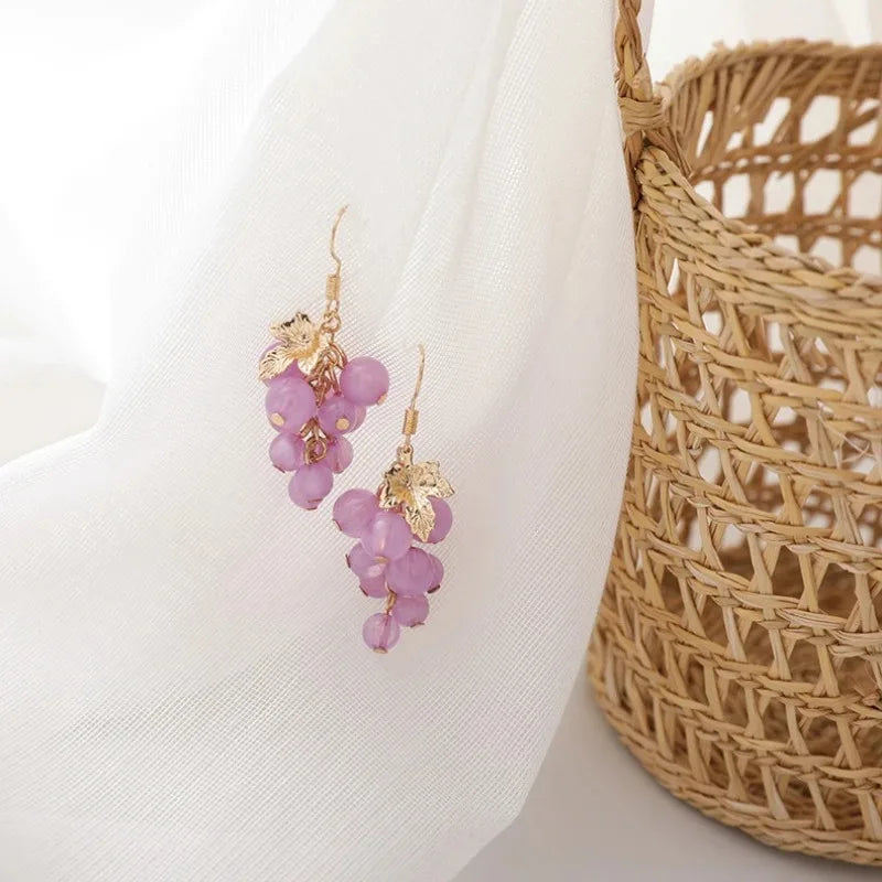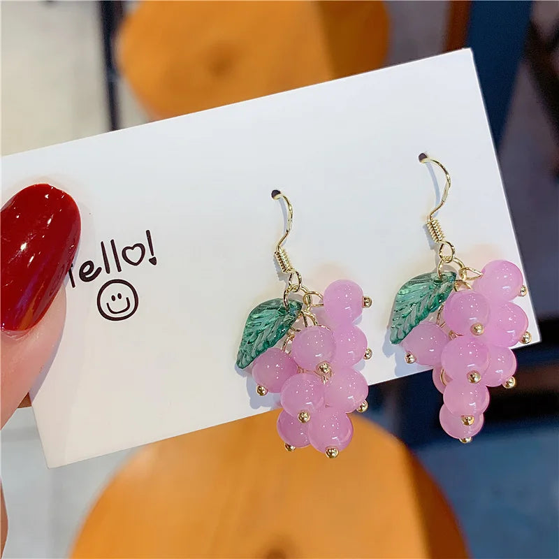 Sweet Korean Fashion Purple Pink Grape Earrings for Women Y2K INS Retro Handmade Beaded Fruit Hook Earring Gift