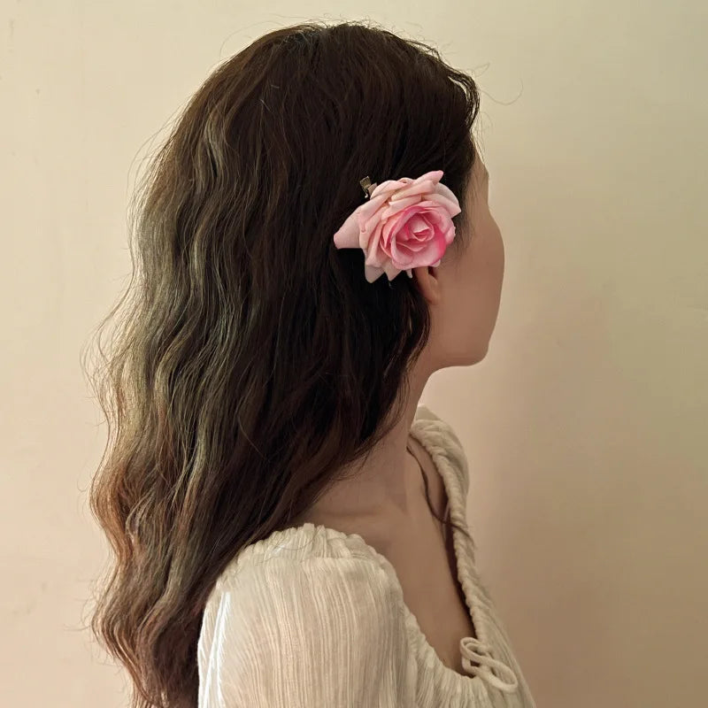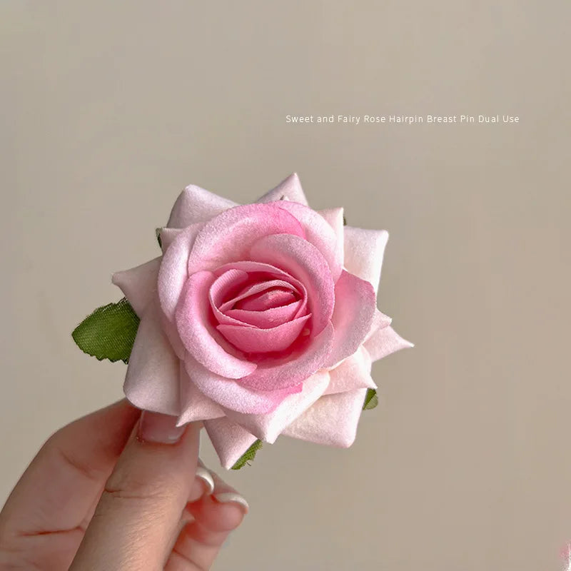 Vintage Romantic Red Pink Rose Flower Fabric Hairpin Brooch Women Korean Fashion Hair Clip Wedding Hair Accessories