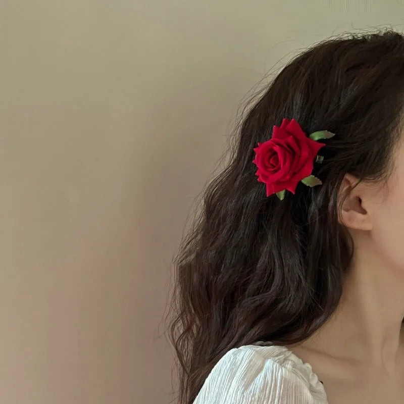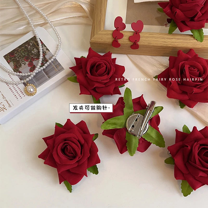 minus Vintage Romantic Red Pink Rose Flower Fabric Hairpin Brooch Women Korean Fashion Hair Clip Wedding Hair Accessories