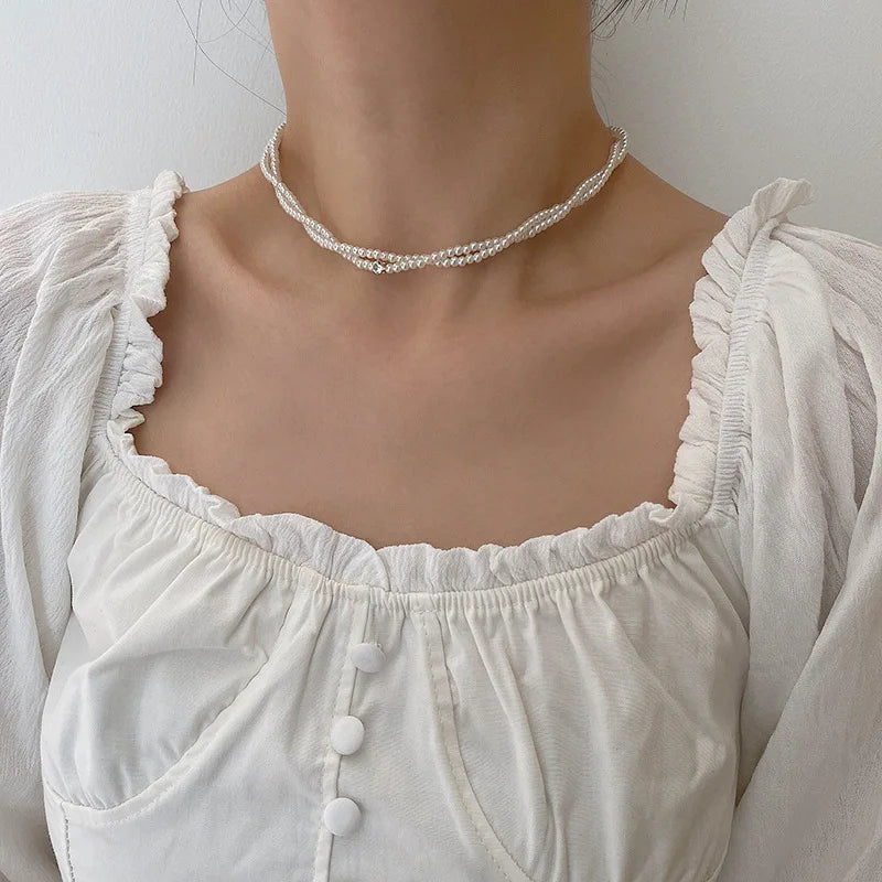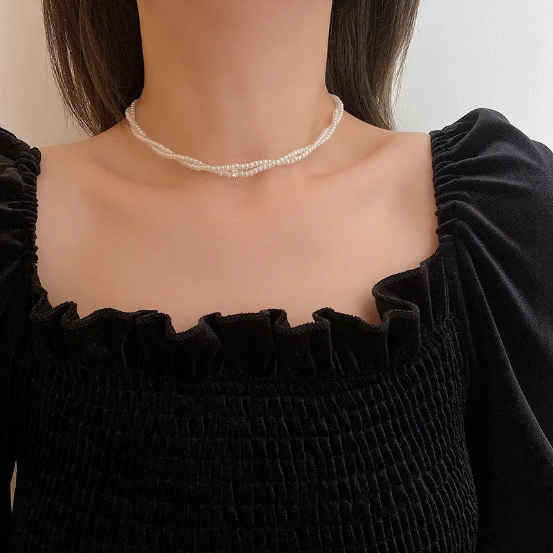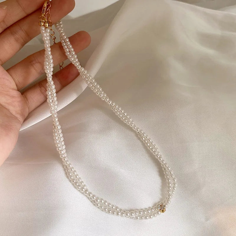 Vintage Women Twine Pearl Necklace Rhinestone Pendant Temperament Choker Collar Girl Korean Fashion Y2K Style Necklace Jewelry