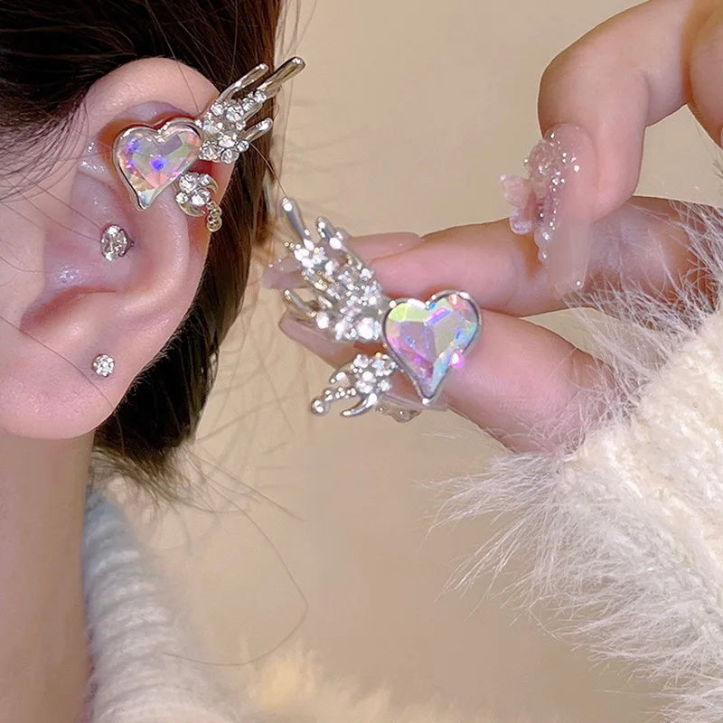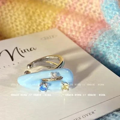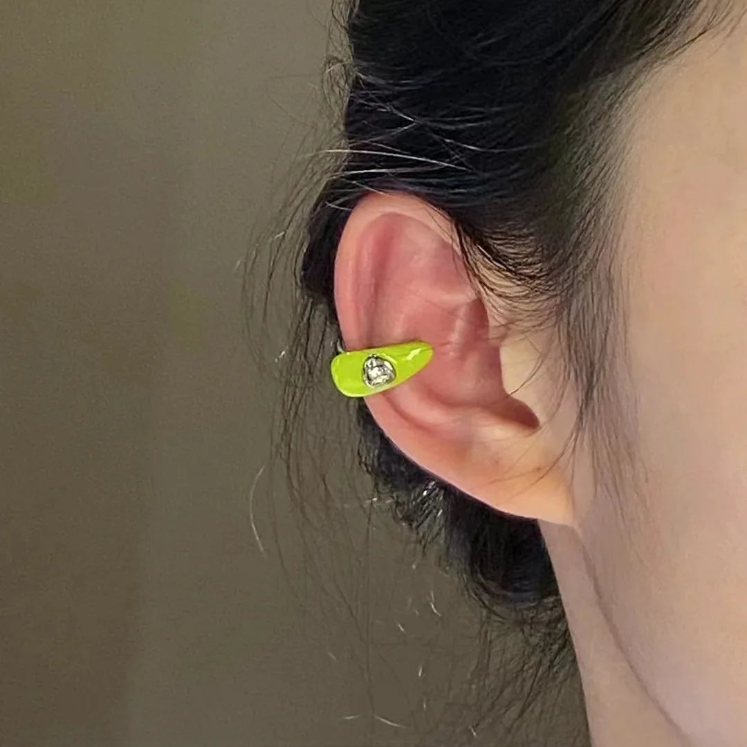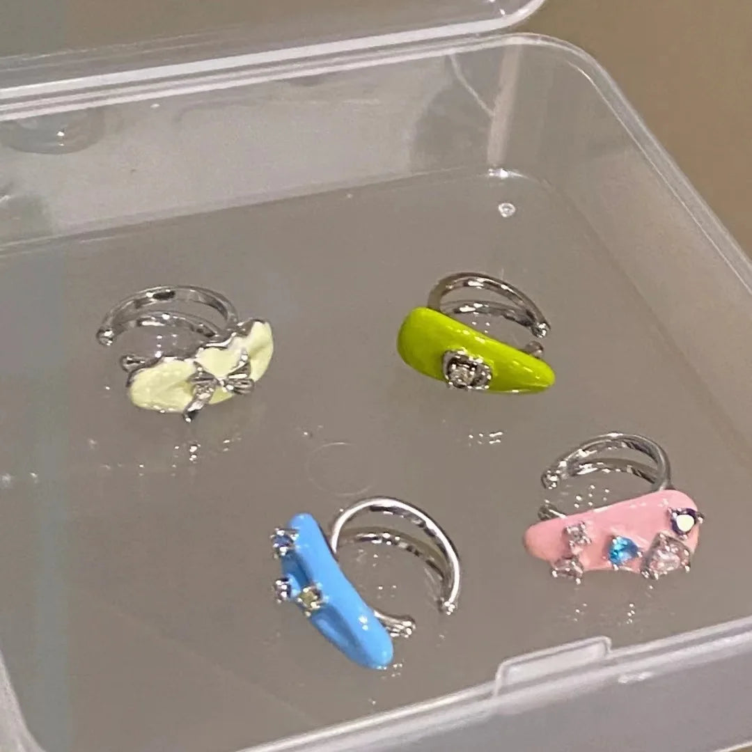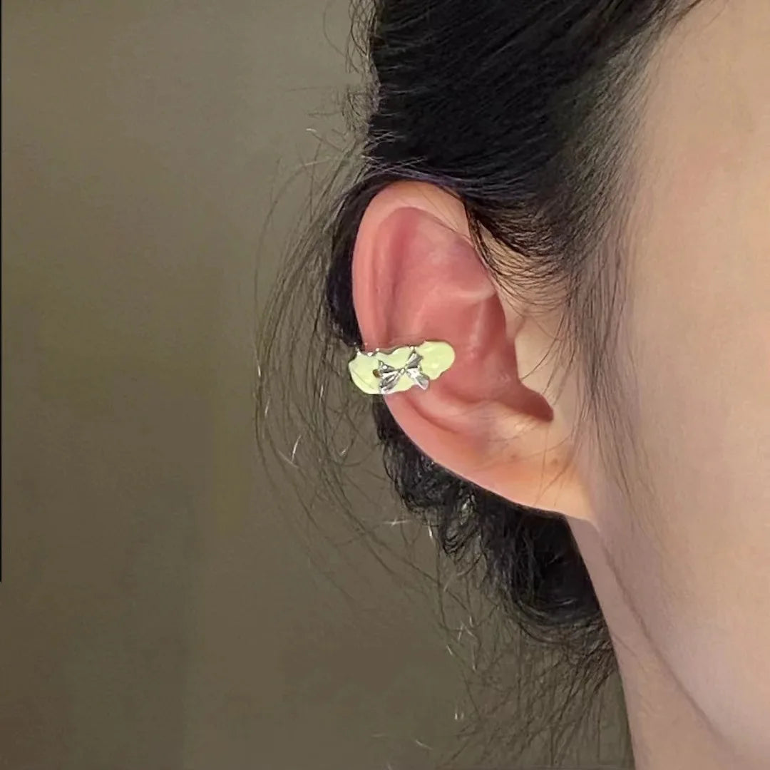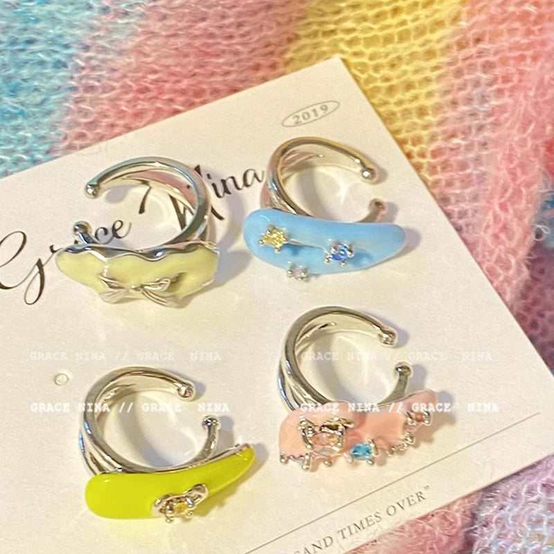 minus Women Y2K Colorful Rhinestone Bow Painting Oil Ear Clips Korean Fashion Kpop Girl No Piercing Ear Cuff brincos 2023